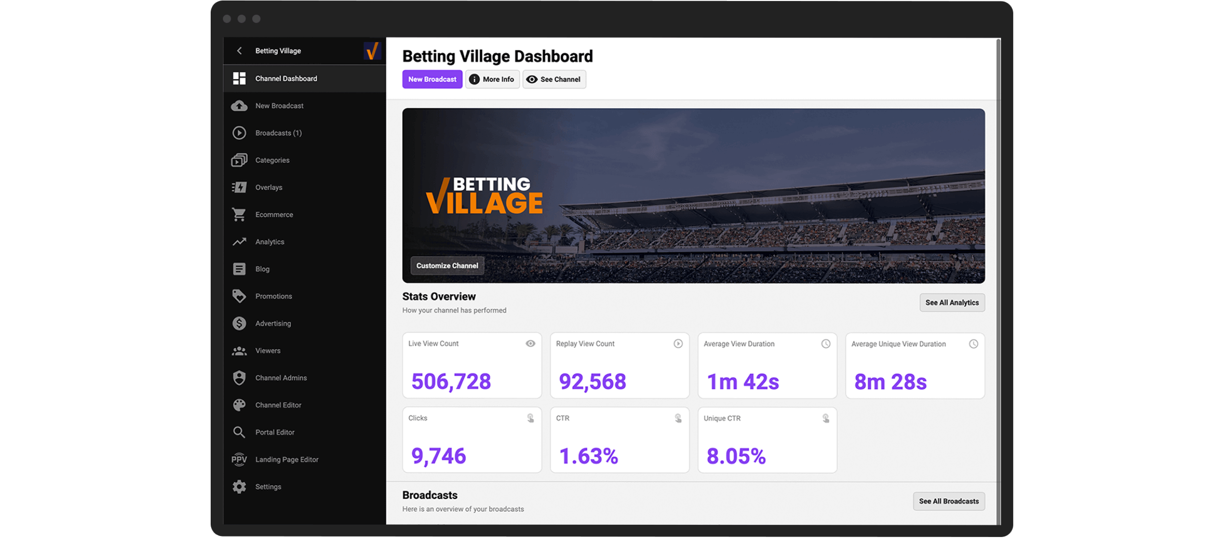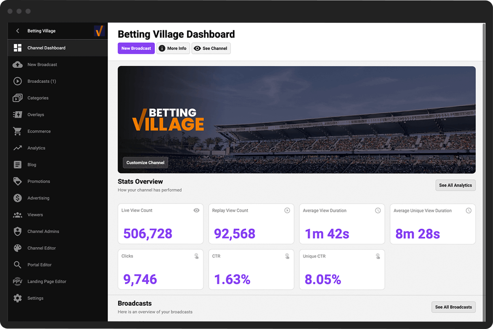 PANDA's plug & play platform is easy to use and requires no custom coding. From PANDA's dashboard, set up your betting and engagement options and then schedule, stream or upload your video — PANDA handles the rest.