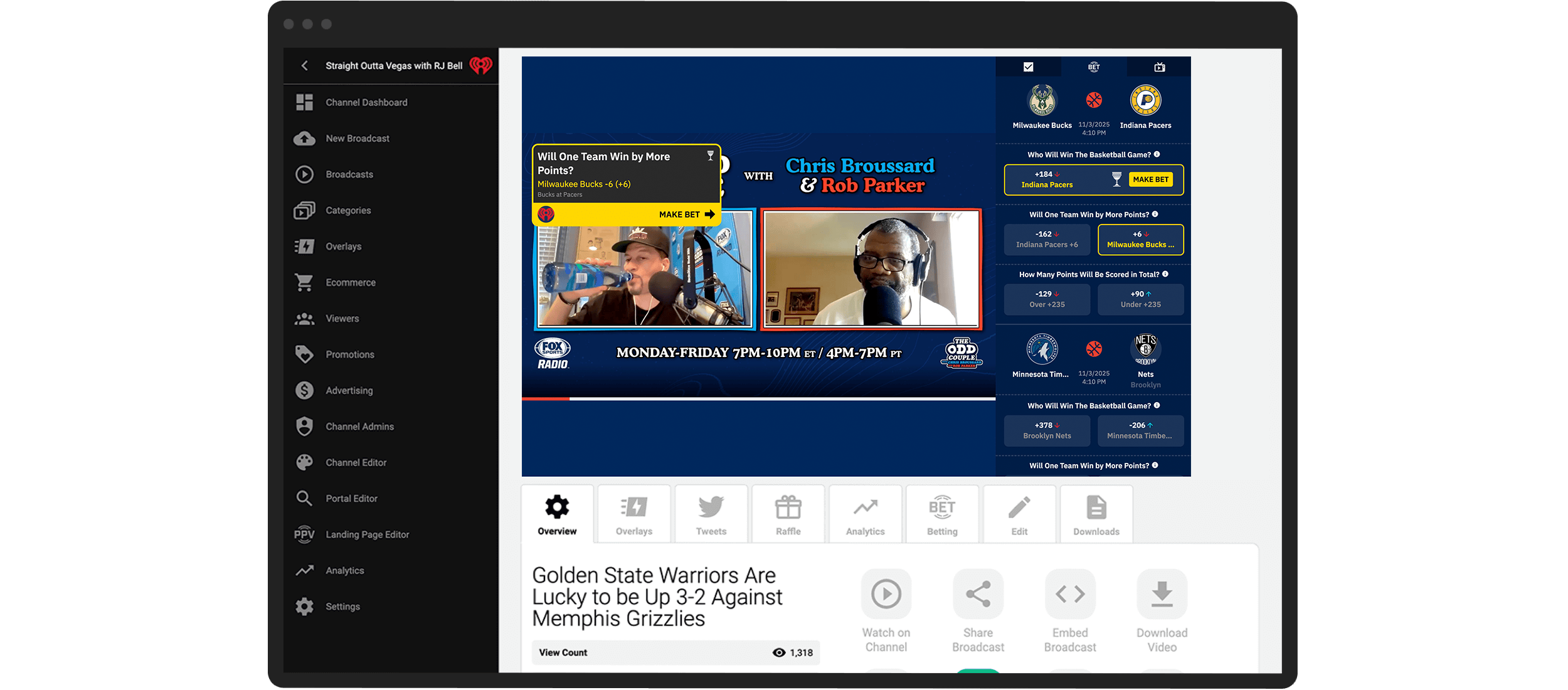 Moderate live chat, trigger bet picks, and feature social content during a live show from one easy-to-use interface