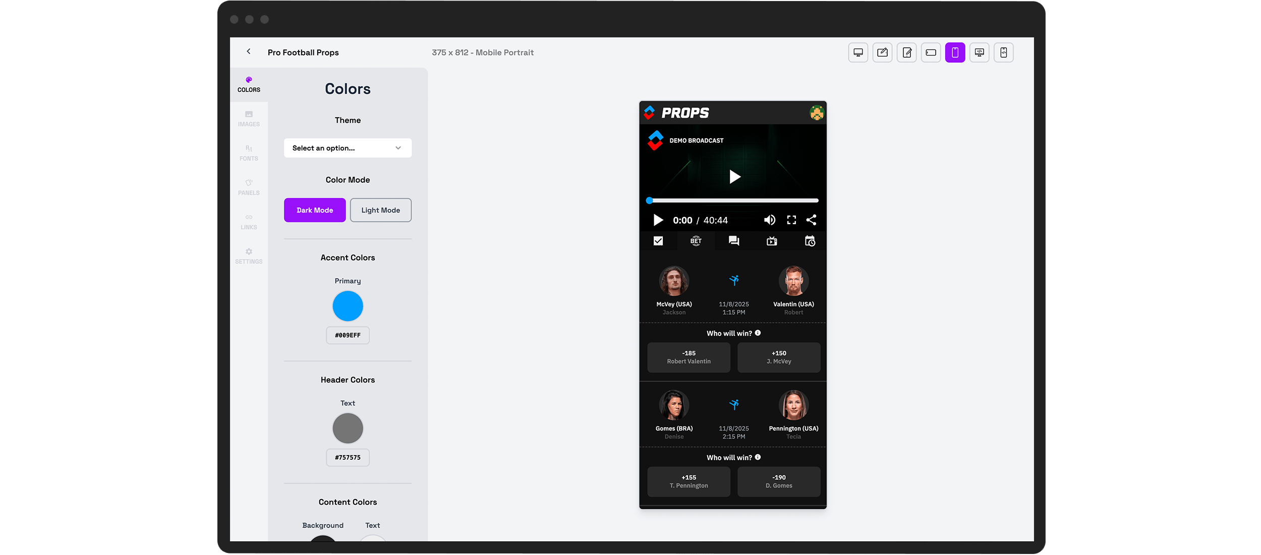 Easily embed PANDA's Watch & Bet player on your website, app, or editorial content, or use PANDA to power a fully branded video portal on your domain or subdomain. What's more, harness social by automatically restreaming your content from PANDA to multiple platforms at once.